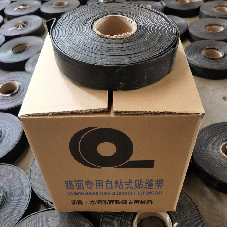 路面贴缝带,是以基质沥青为原料,以SBS、高分子橡塑改性材料,通过剪切、搅拌等方法使SBS等高聚物均匀地分散于沥青中,形成SBS共混材料,经科学工艺涂覆纤维织物或纤维毡胎体上,以粉状、粒状、片状或薄膜材料为覆面材料制成可卷曲的片状材料。主要用来处理路面各种形态裂缝。使用时揭去隔离纸直接铺贴在路面裂缝上,可起到密封、防止路面裂缝扩散,而且可有效防止渗水对下面层结构和路基造成破坏,延长路面使用寿命。